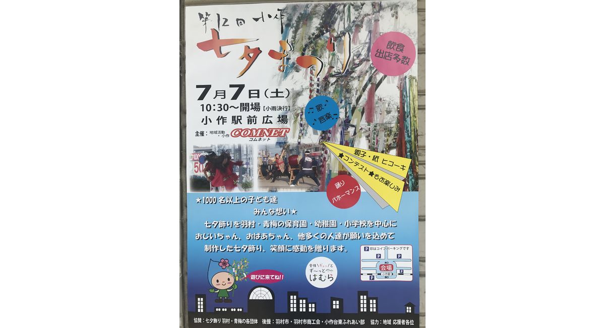 7/7(土)はJR小作駅東口ロータリー内で行われる『小作七夕まつり』に出店します‼️