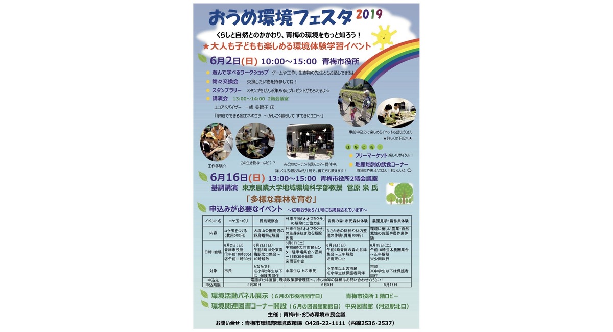 明日6/2(日)は、青梅市役所で開催される『おうめ環境フェスタ』(10時〜15時)に緊急参戦することになりました‼️