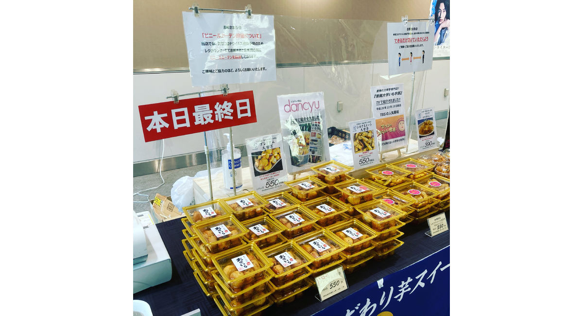本日のラインナップは、プレミアム大学芋、シルクスイート大学芋、大学芋チップス、そしていぶし庵製燻製チーズ&たまごを販売してます💡