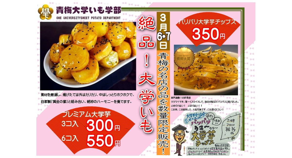 #おうめ大学芋本舗#青梅大学いも学部 #青梅 #青梅駅 #青梅スイーツ #芋かりんとう#芋ようかん #芋けんぴ #新型コロナに負けるな#コロナに負けるな #スイートポテト#dancyu #マツコの知らない世界#日本大学芋愛協会 #薬師湯 #とうきょうスカイツリー #さつまいも風呂