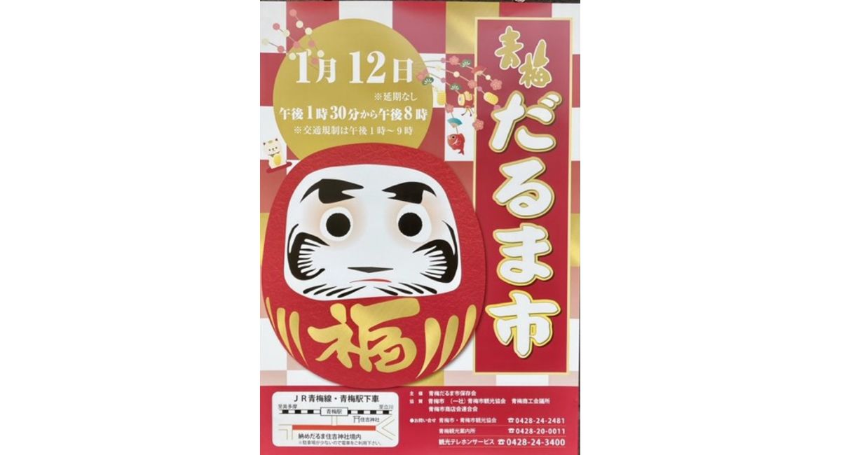 1/12(水)はJR青梅駅周辺の旧青梅街道沿いで行われる『青梅だるま市』(13時半〜20時)に出店します‼️