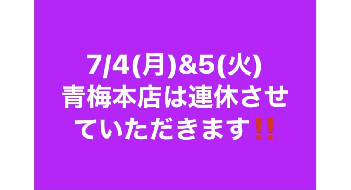青梅本店は4日(月)&5日(火)連休させていただきます🙇♂️