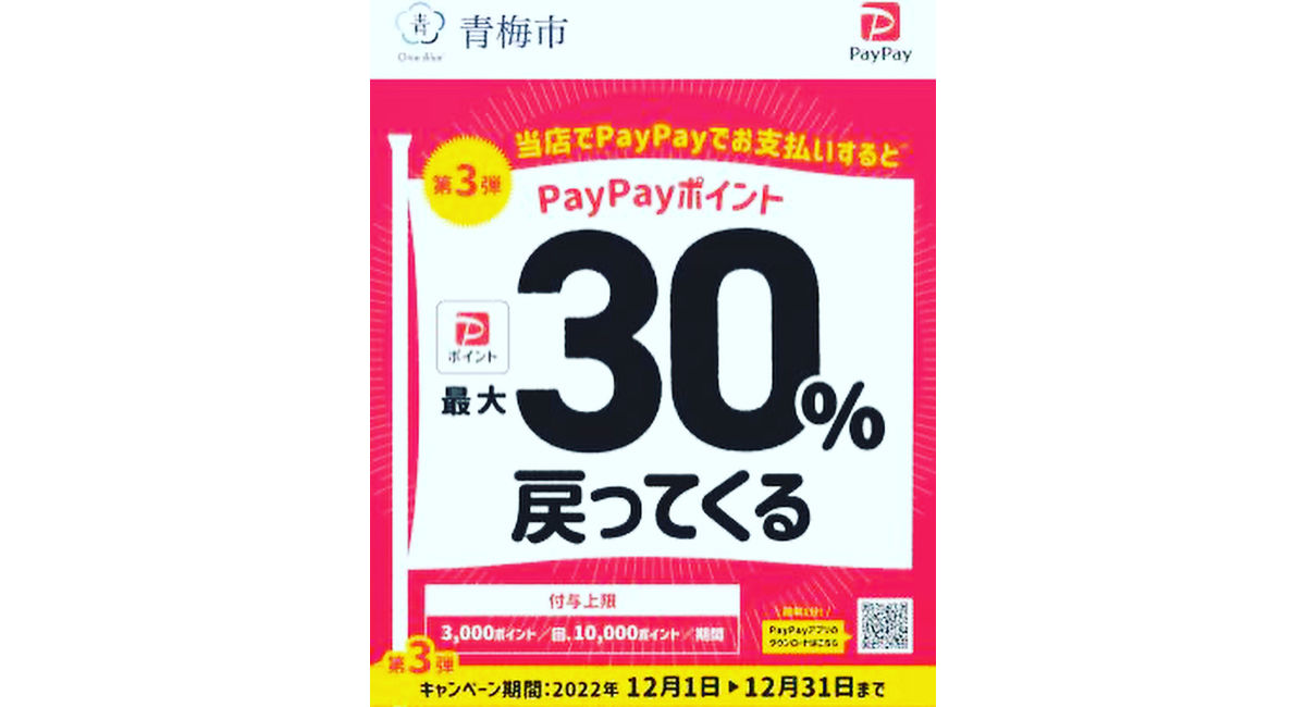 本日12/1(木)〜31(土)PayPay残高でお支払いの方、最大で30%戻ってくるキャンペーンが再び始まります‼️