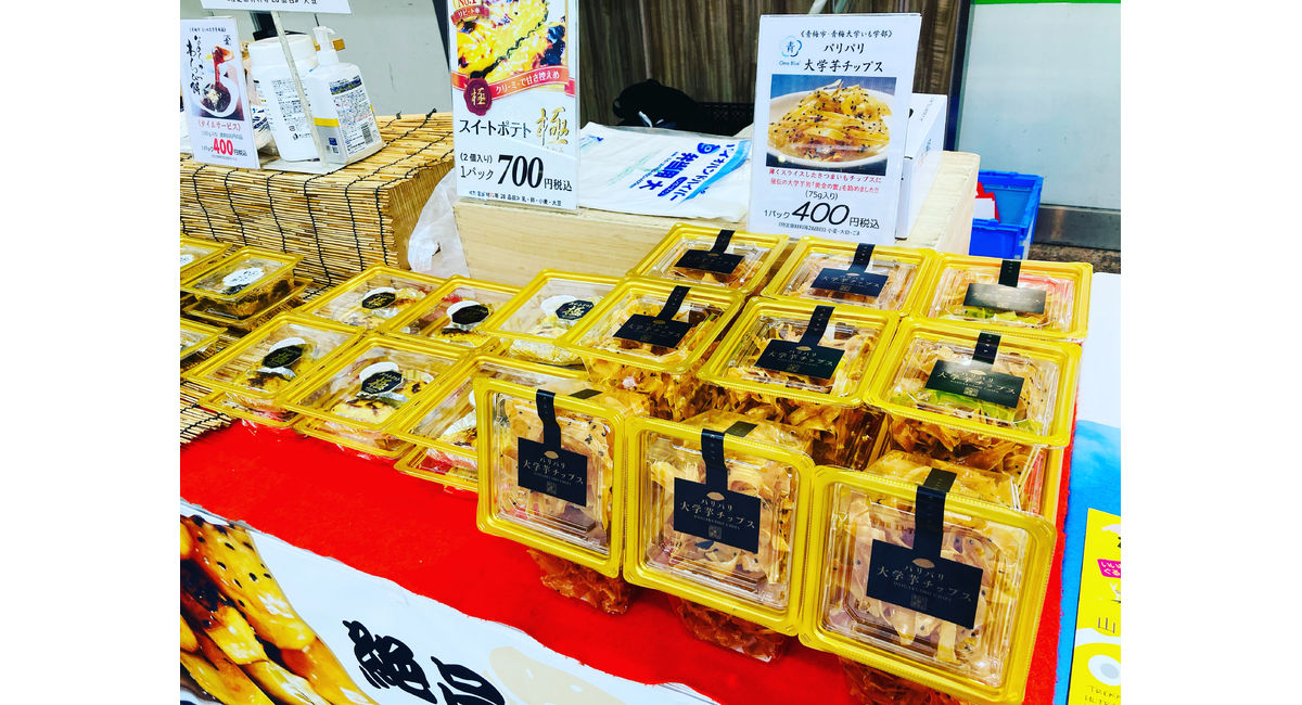 今日のラインナップは、プレミアム大吟醸大学芋、紅はるか大学芋、パリパリ大学芋チップス、スイートポテト極、そして新メニュー『とろーりとろけるわらび餅』を販売してます🍠