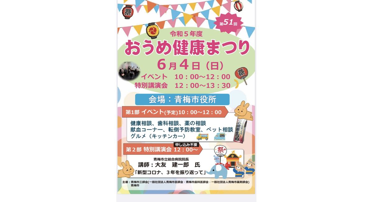 6/4(日)おうめ健康まつり(青梅市役所)