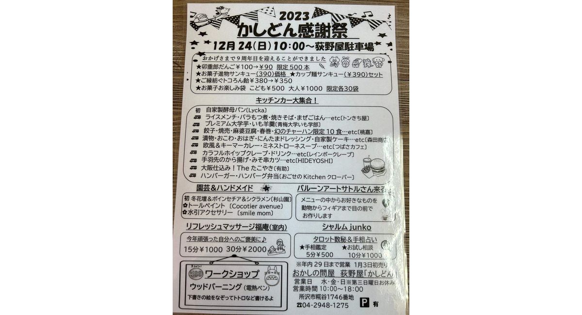 12/24(日)クリスマスイブは、所沢市にありますお菓子問屋のおぎのや様の年内最後の『かしどん祭り』に出店します‼️