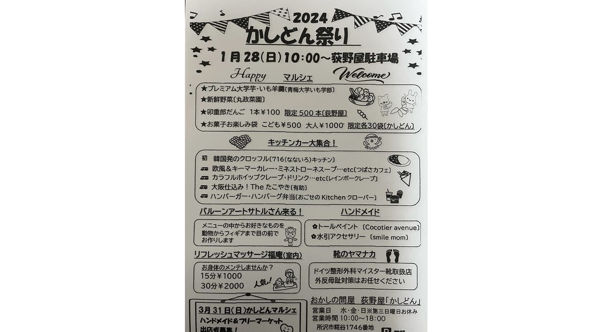1/28(日)は、所沢市にありますお菓子問屋のおぎのや様恒例の『かしどん祭り』に出店します‼️