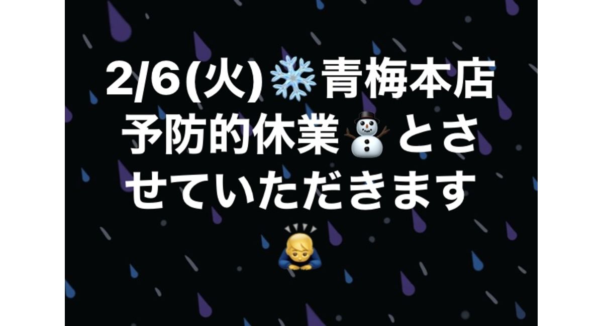 2/6(火)青梅本店は、積雪❄️による影響を考慮し、予防的休業させていただきます‼️
