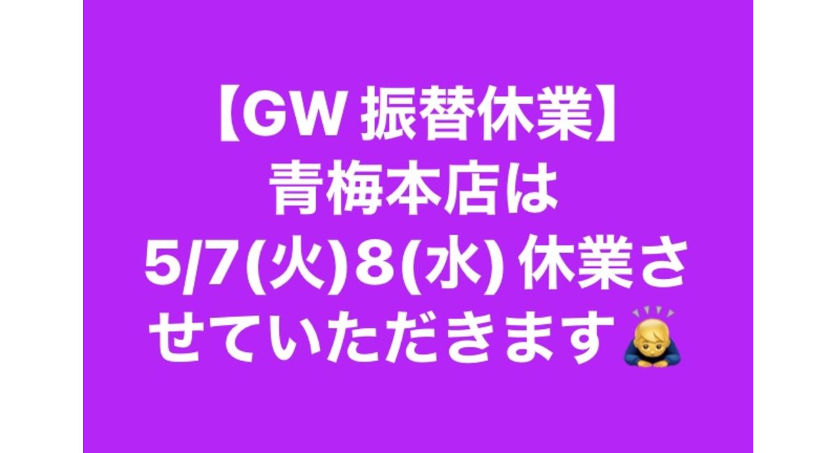 5/7(火)&8(水)青梅本店はGW振替休業させていただきます‼️