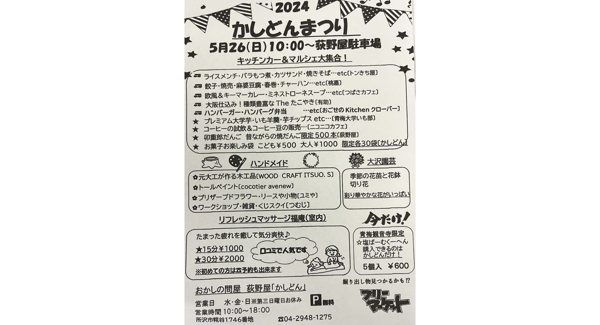 5/26(日)は、所沢市にありますお菓子問屋のおぎのや様の『かしどんまつり』に出店します‼️
