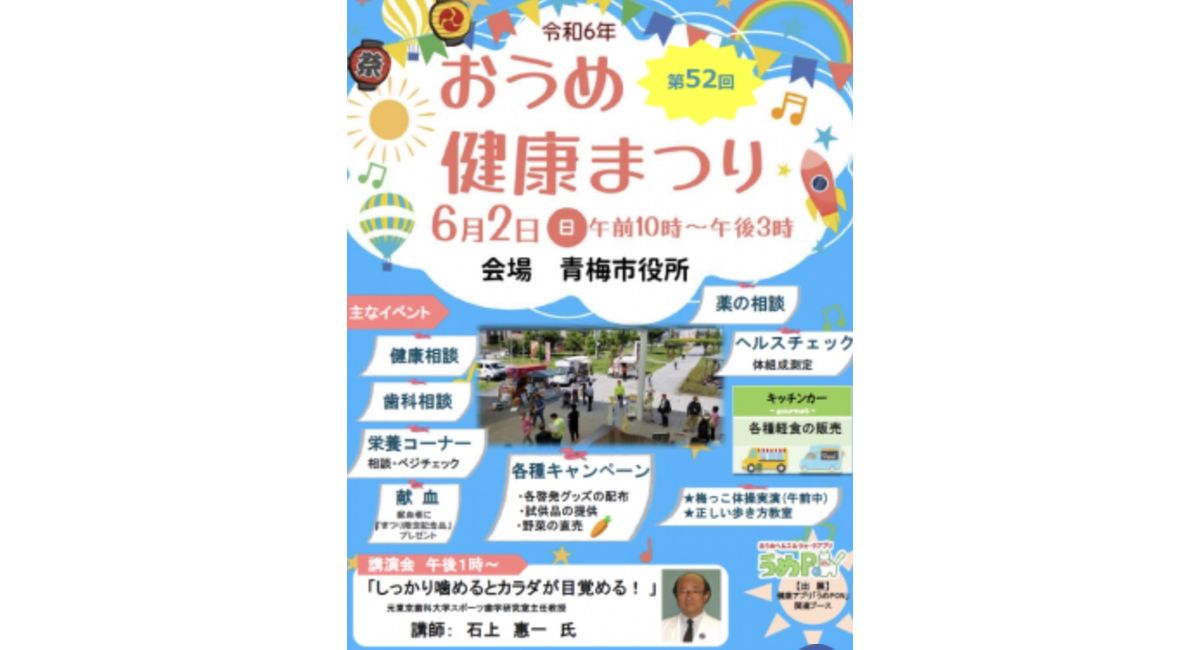 6/2(日)は青梅市役所で行われる『おうめ健康まつり』(10時〜15時)に出店します‼️