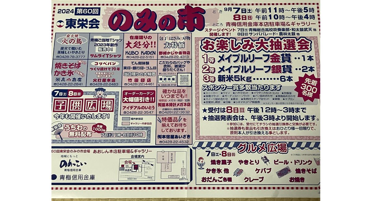 9/7(土)&8(日)は、地元開催されます東栄会『のみの市』に出店します‼️