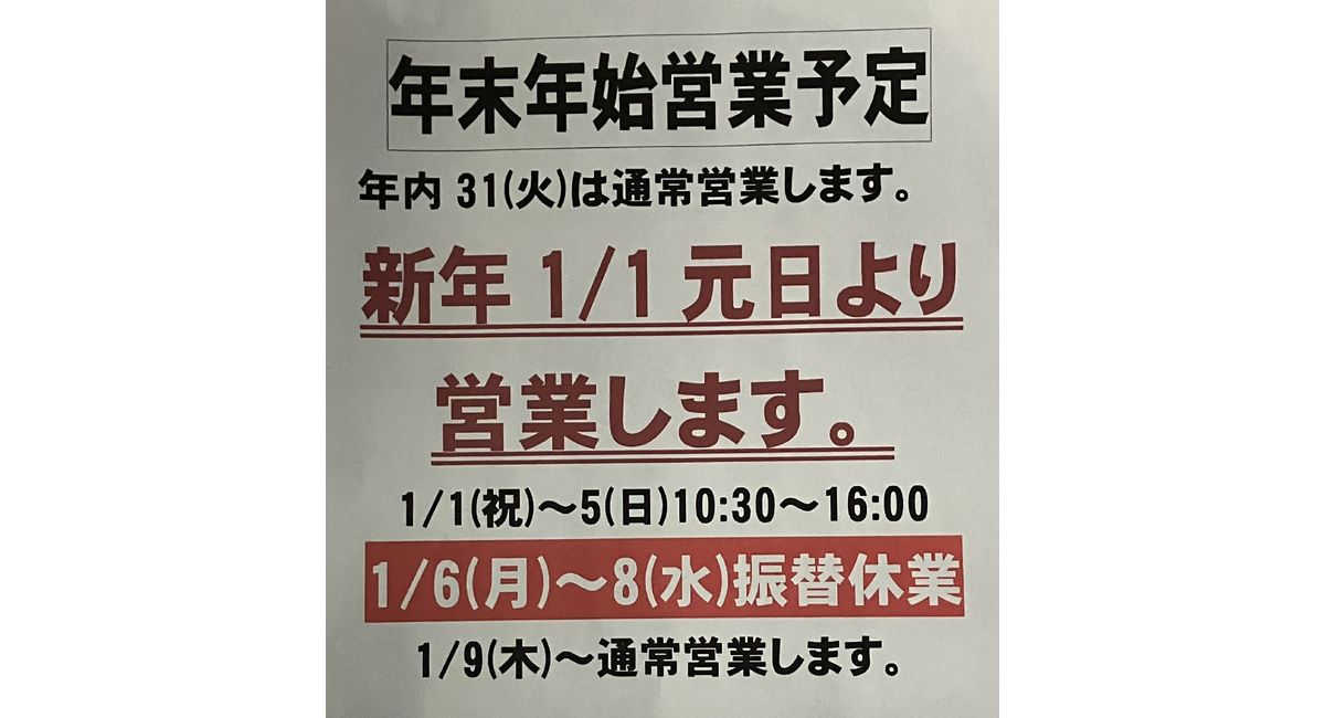 やっとこ年末年始の営業予定が決まりました‼️