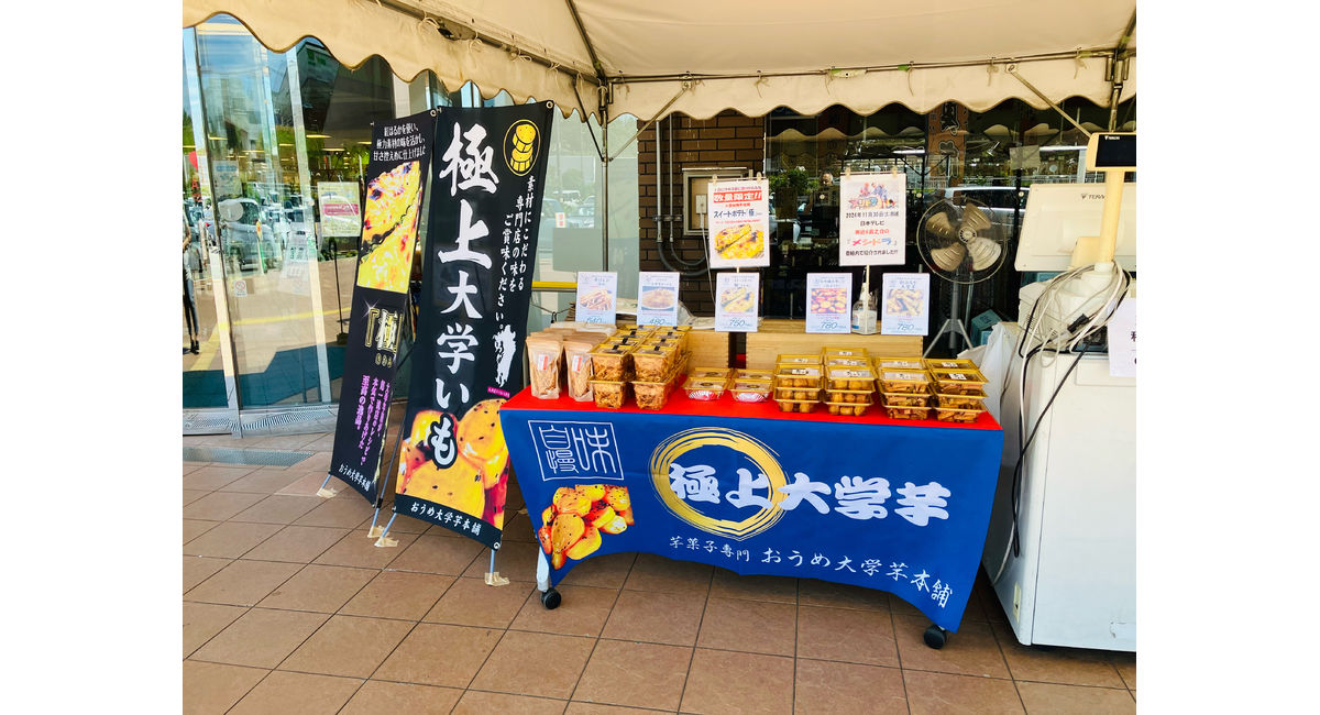今日のラインナップは、プレミアム大吟醸大学芋、紅はるか大学芋、パリパリ大学芋チップス、スイートポテト極、芋けんぴ塩味です🍠
