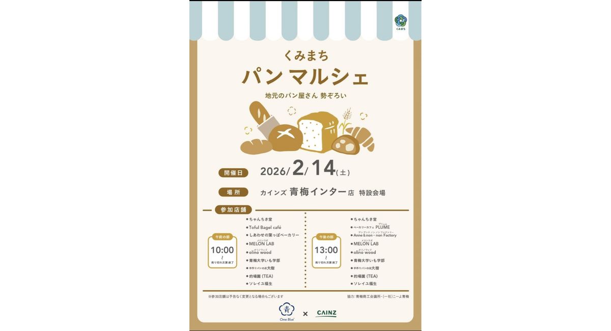 2/14(土)カインズホーム青梅インター店で開催されますパンマルシェに出品します‼️