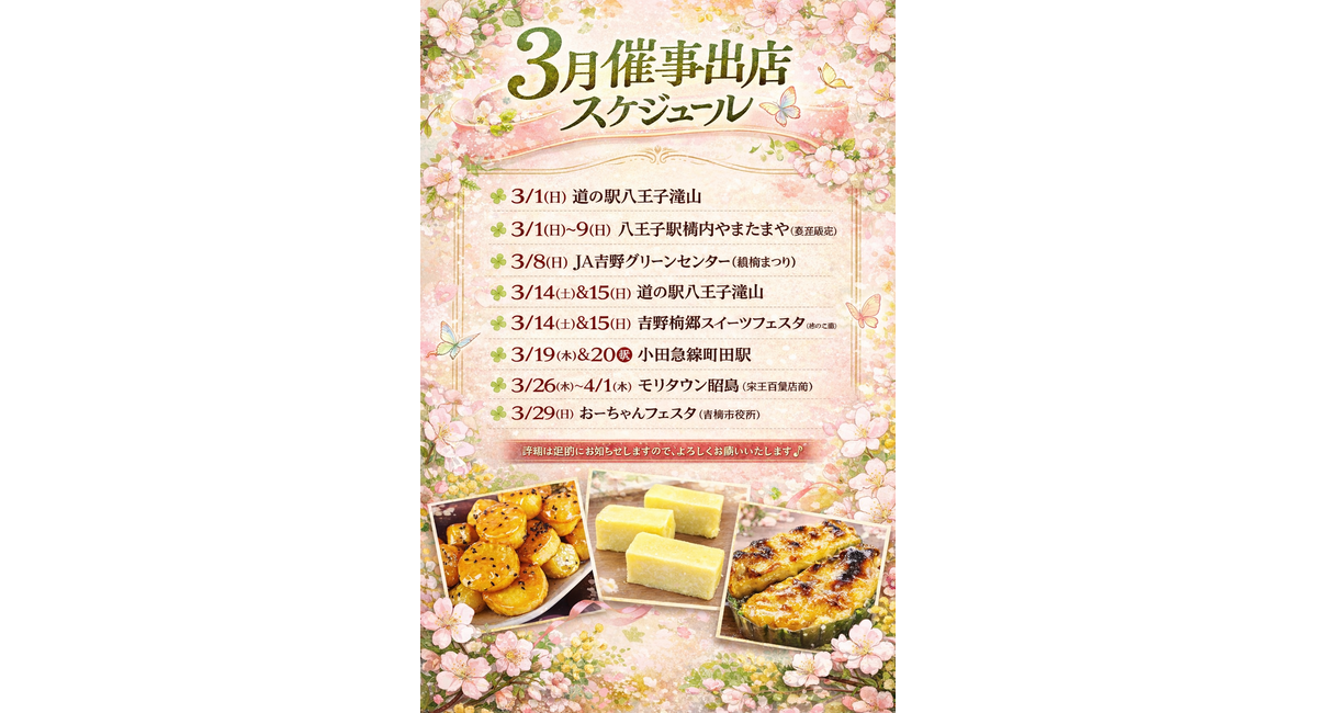 取り急ぎ3月の催事スケジュール予定をお知らせしておきます💡