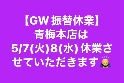 • 5/7(火)&8(水)青梅本店はGW振替休業します♪