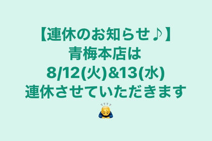 • 青梅本店は8/12(火)&13(水)連休します♪