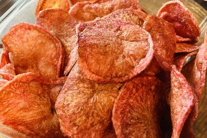 完成しました‼️   今年から地元JA西東京が新たな青梅の特産品として取り組んでおります新品種のじゃがいも『ドラゴンレッドをポテトチップスにしました🥔   名前の通り赤身のじゃがいもなので、仕上が...